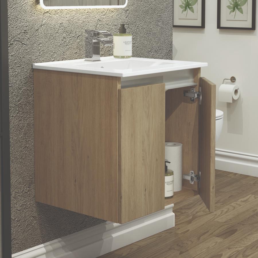 2. Features of Newland 500mm Double Door Suspended Basin Unit With Ceramic Basin Natural Oak: