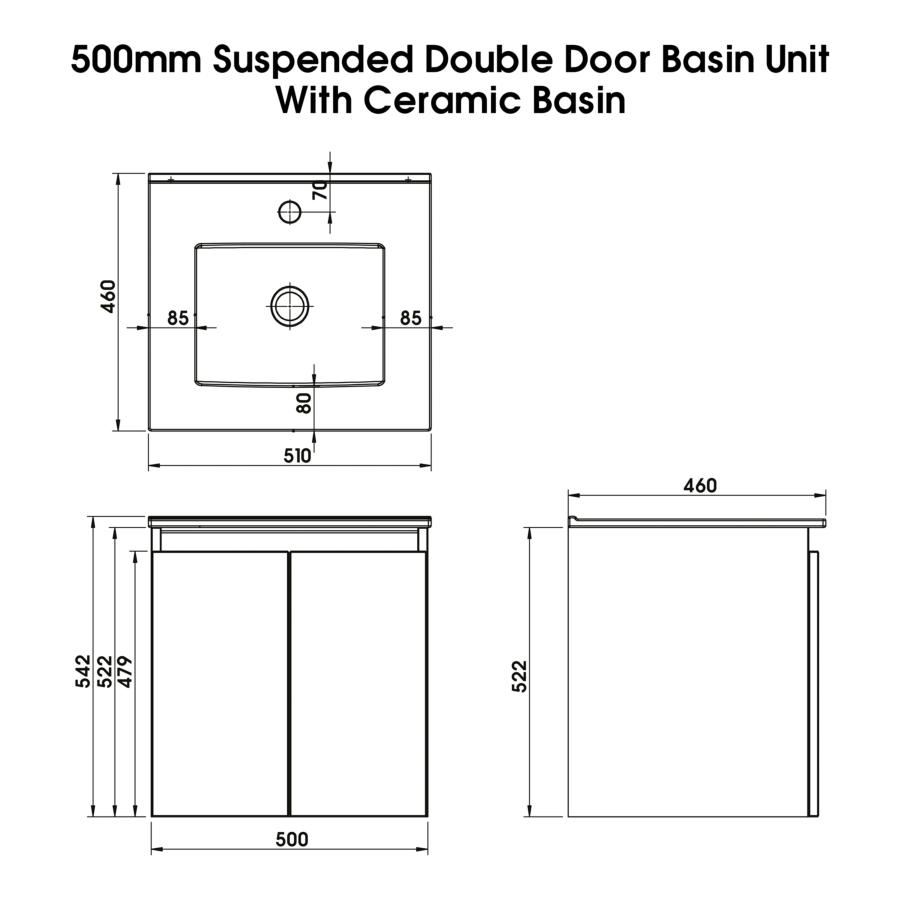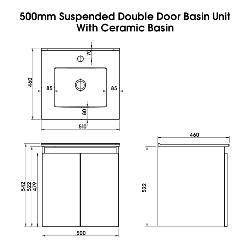 1. Description of Newland 500mm Double Door Suspended Basin Unit With Ceramic Basin Natural Oak: