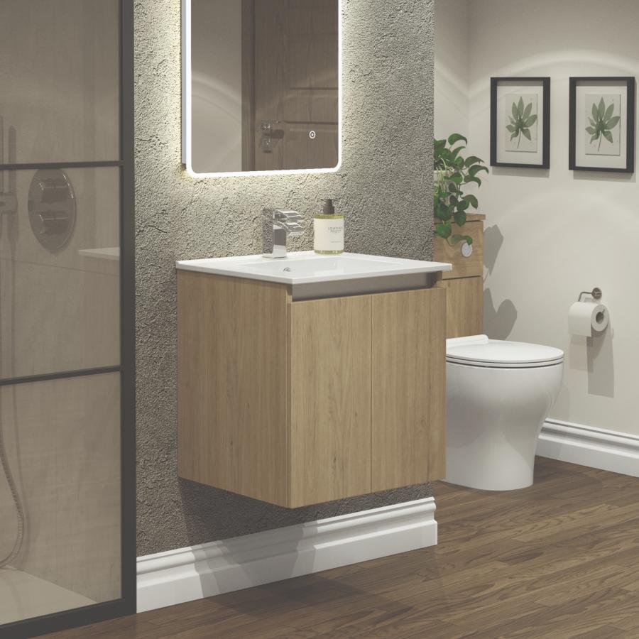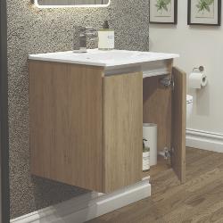 Newland 500mm Double Door Suspended Basin Unit With Ceramic Basin Natural Oak