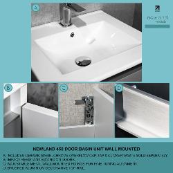 1. Description of Newland 500mm Double Door Suspended Basin Unit With Ceramic Basin Pearl Grey: