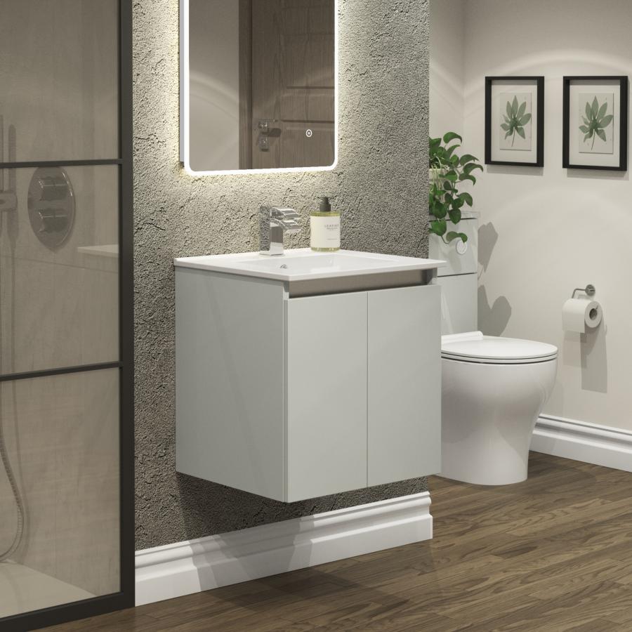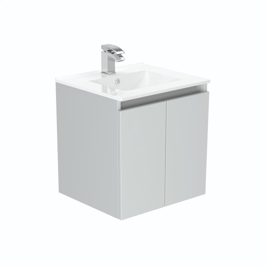 Newland 500mm Double Door Suspended Basin Unit With Ceramic Basin Pearl Grey