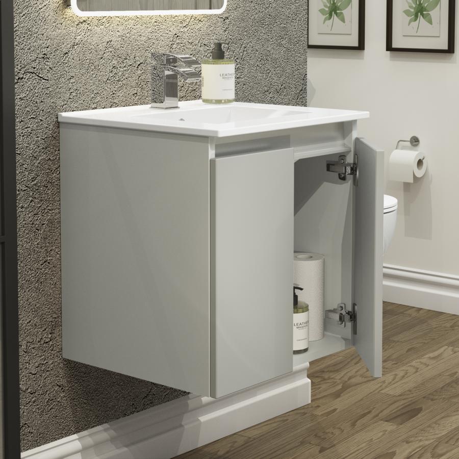 2. Features of Newland 500mm Double Door Suspended Basin Unit With Ceramic Basin Pearl Grey: