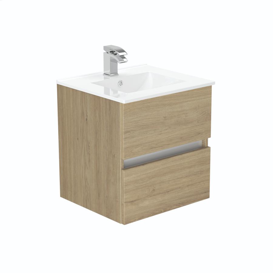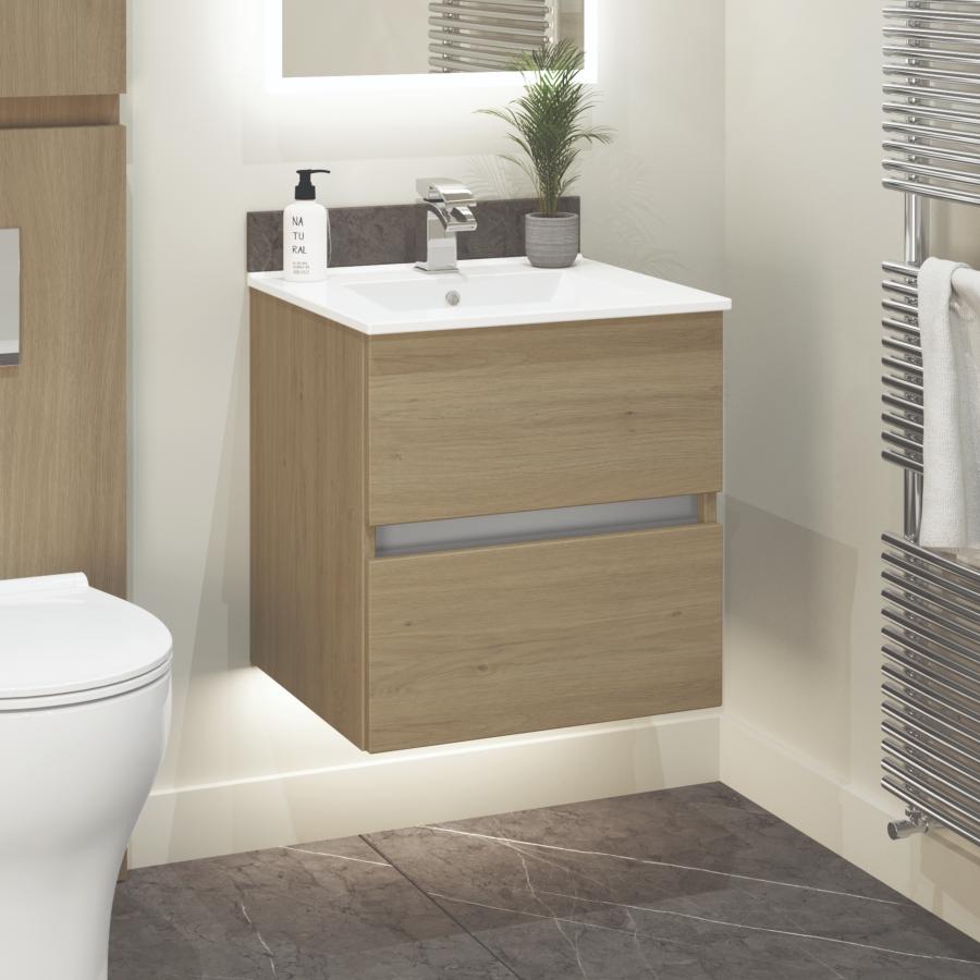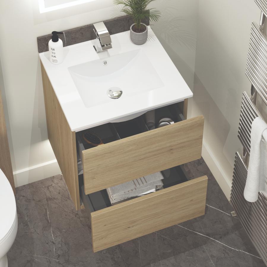 Newland 500mm Double Drawer Suspended Basin Unit With Ceramic Basin Natural Oak
