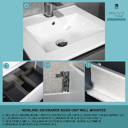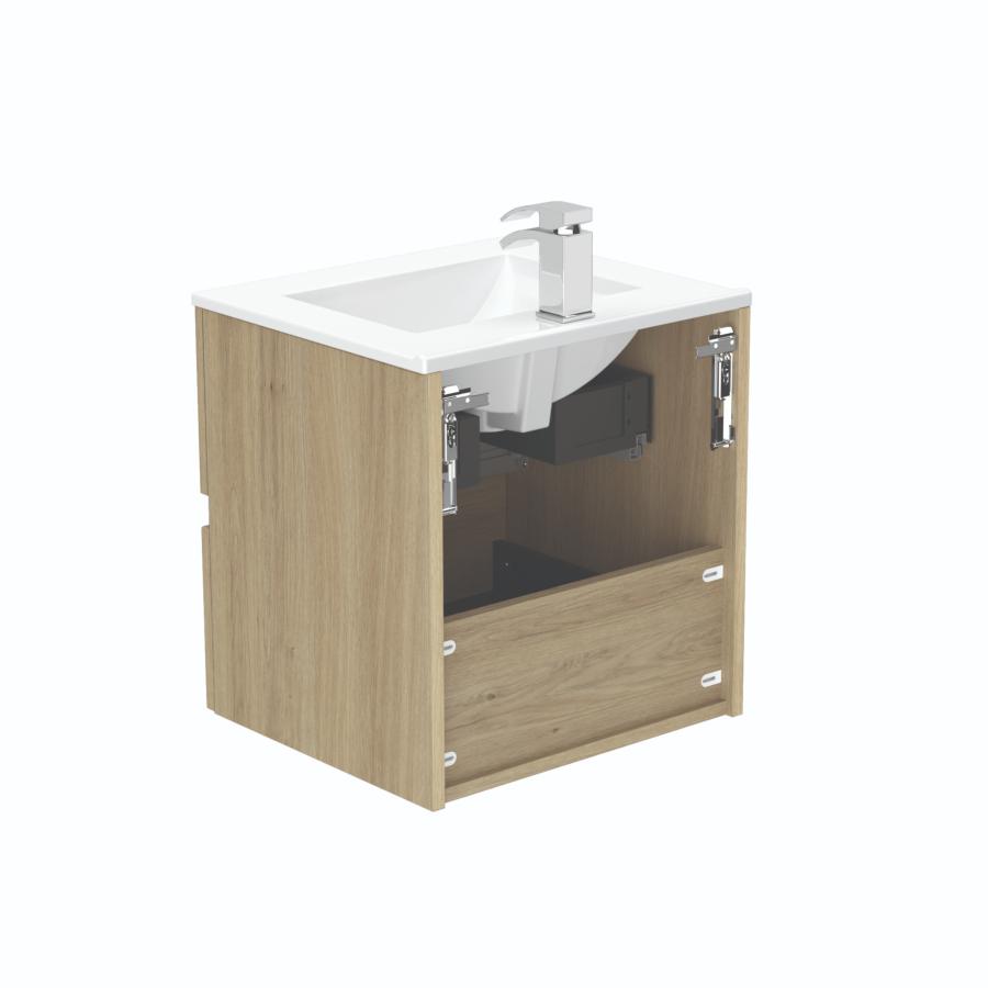2. Features of Newland 500mm Double Drawer Suspended Basin Unit With Ceramic Basin Natural Oak: