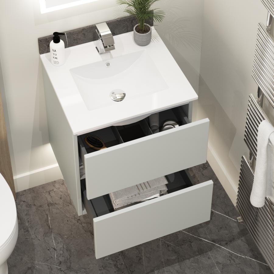 2. Features of Newland 500mm Double Drawer Suspended Basin Unit With Ceramic Basin Pearl Grey: