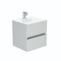 Newland 500mm Double Drawer Suspended Basin Unit With Ceramic Basin Pearl Grey