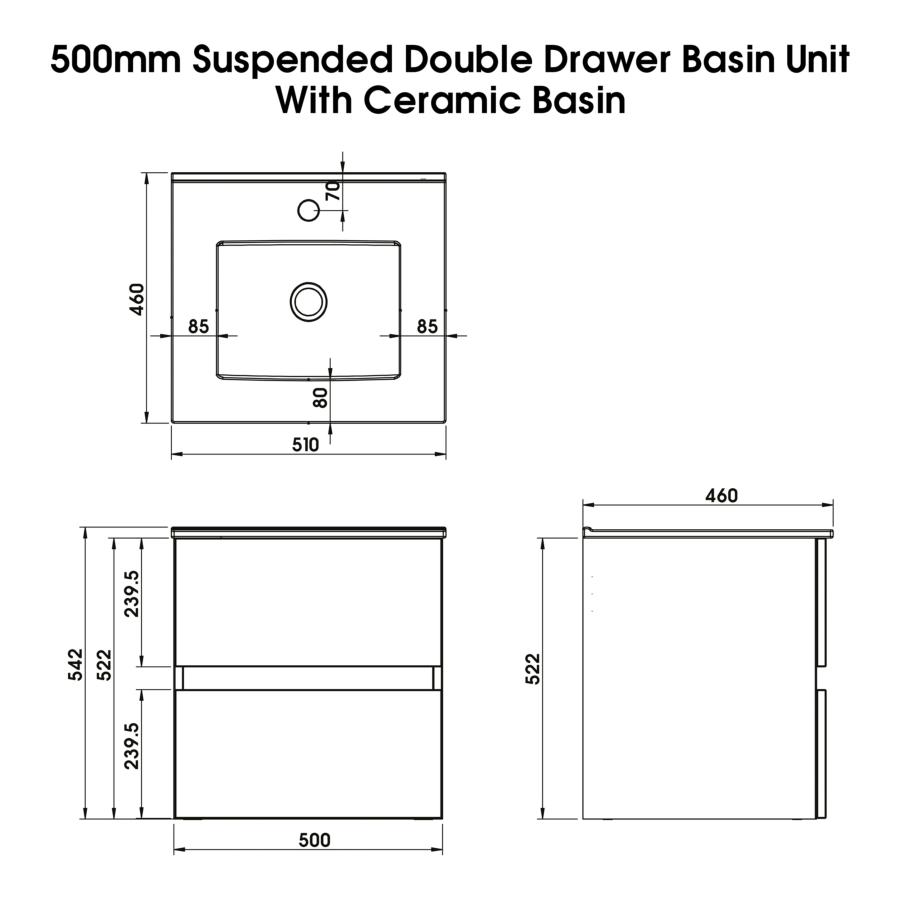 1. Description of Newland 500mm Double Drawer Suspended Basin Unit With Ceramic Basin Sage Green: