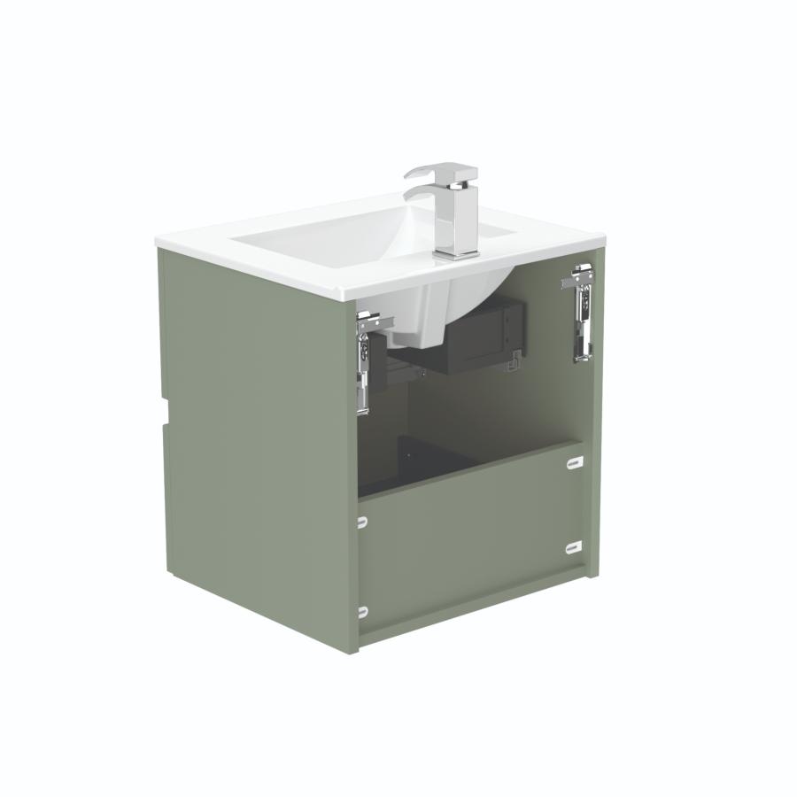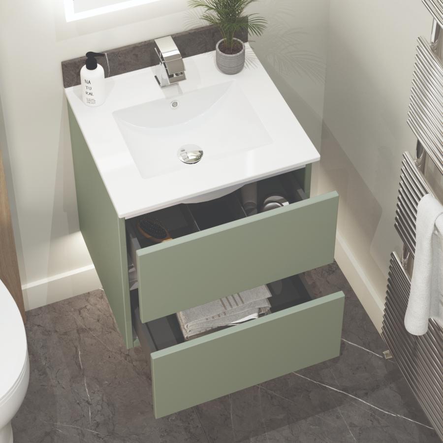 Newland 500mm Double Drawer Suspended Basin Unit With Ceramic Basin Sage Green