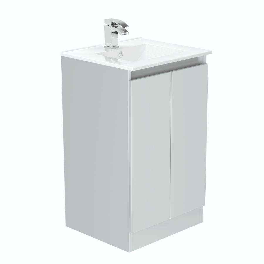 Newland 500mm Floorstanding Double Door Basin Unit With Ceramic Basin Pearl Grey