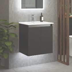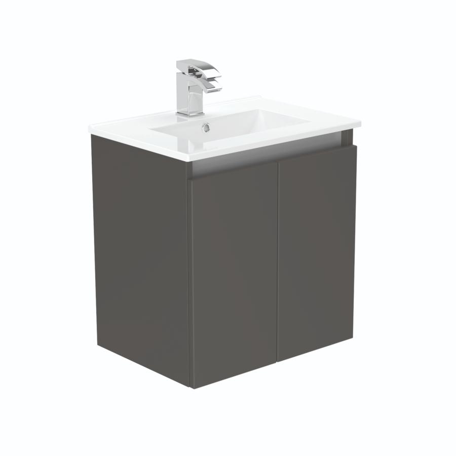 Newland 500mm Slimline Double Door Suspended Basin Unit With Ceramic Basin Midnight Mist