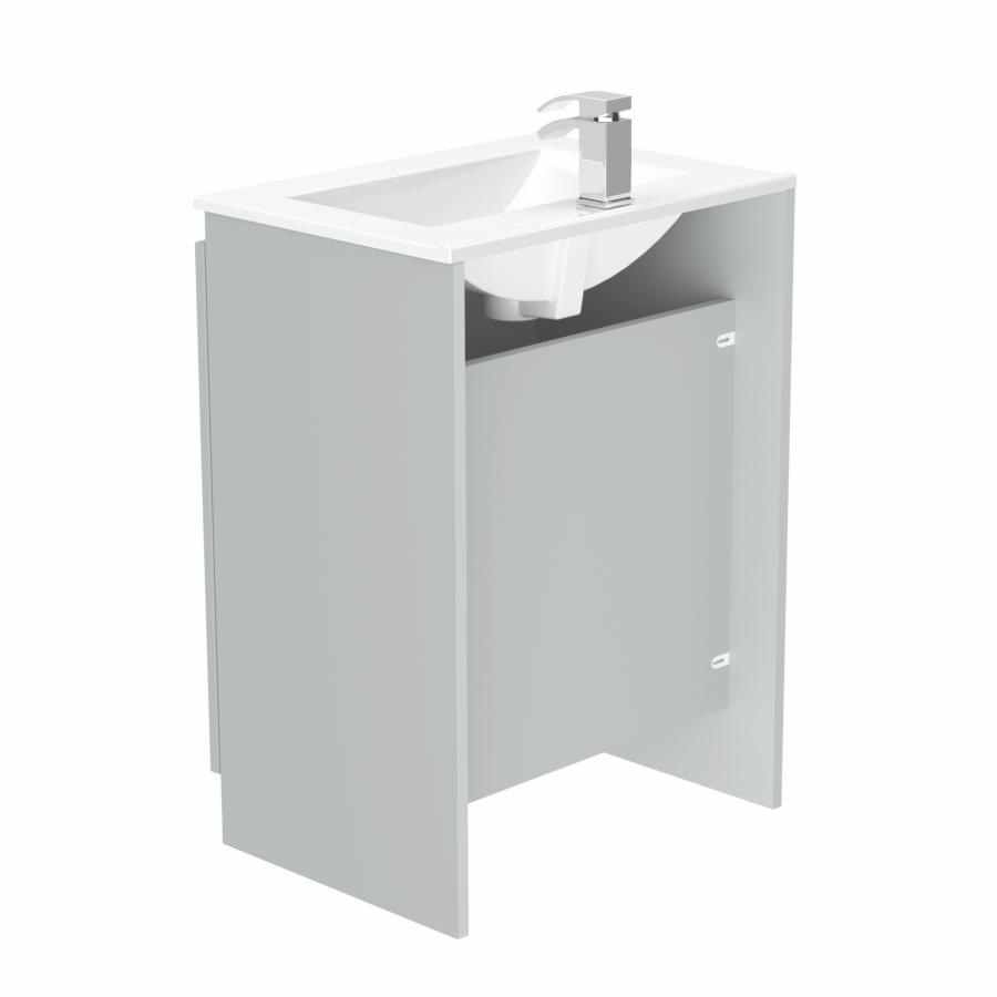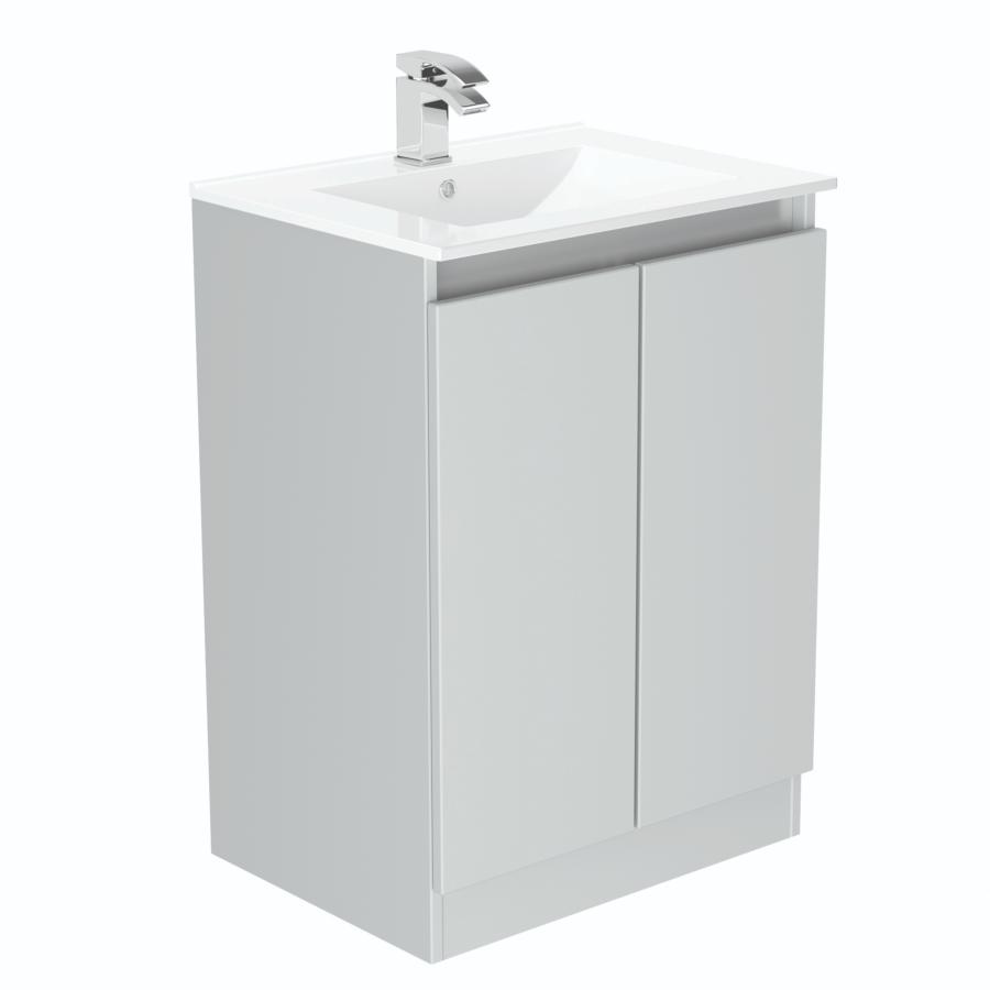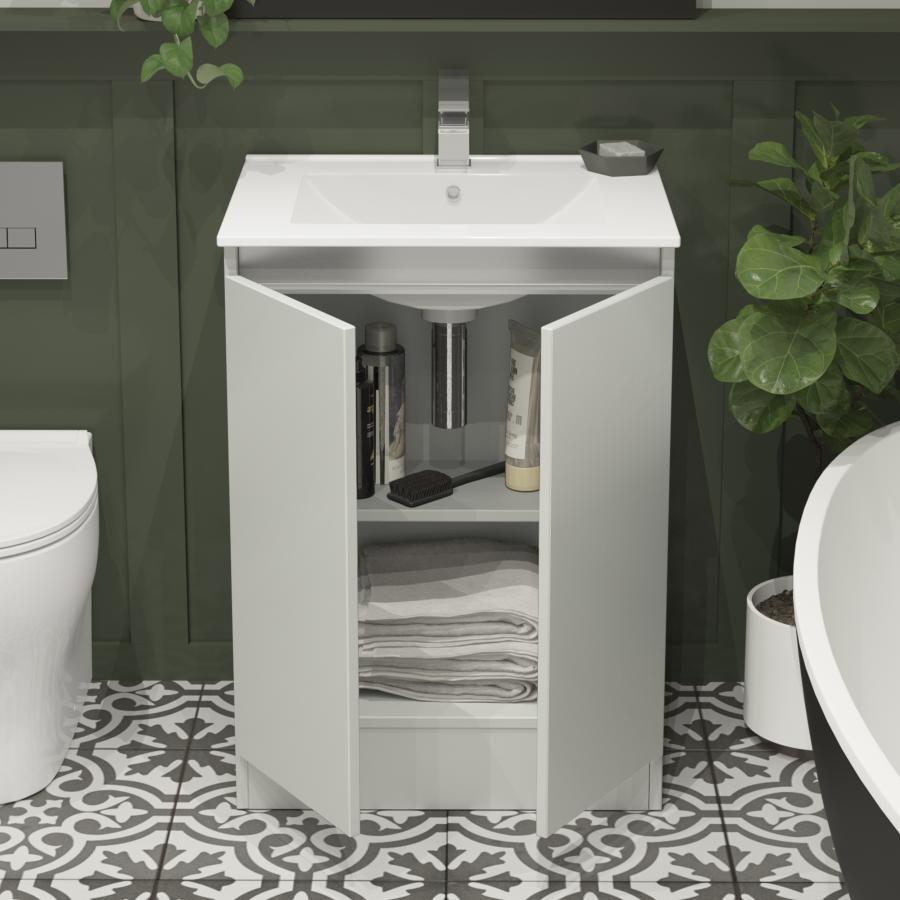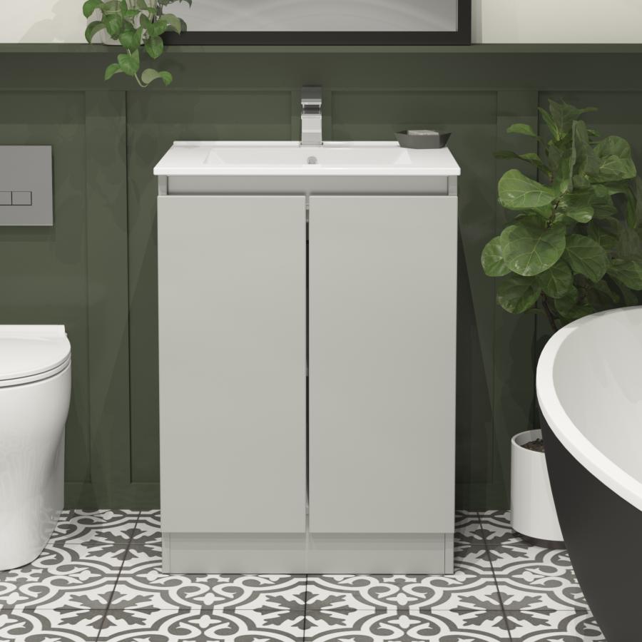 Newland 600mm Floorstanding Double Door Basin Unit With Ceramic Basin Pearl Grey