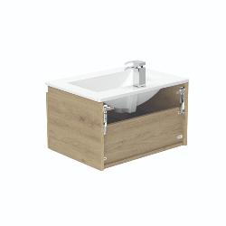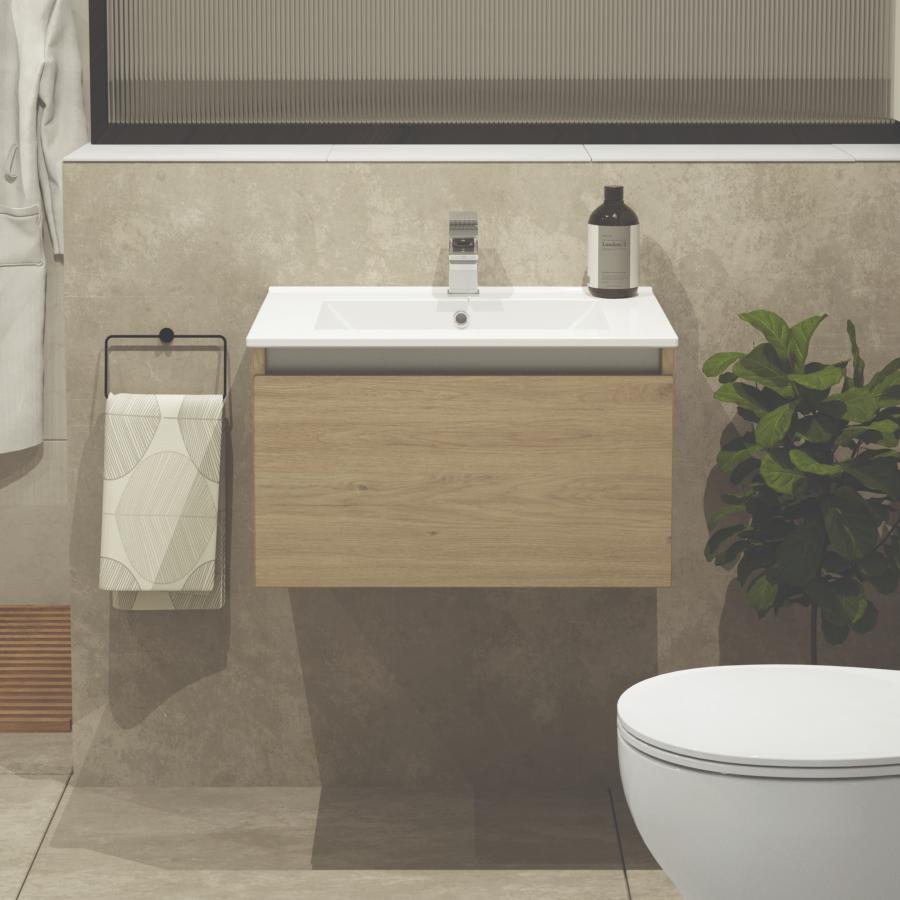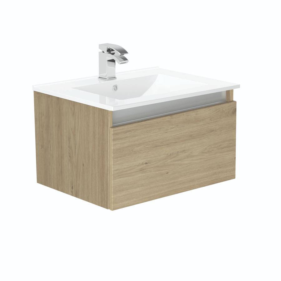 Newland 600mm Single Drawer Suspended Basin Unit With Ceramic Basin Natural Oak
