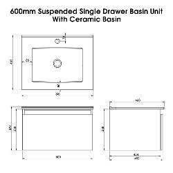 1. Description of Newland 600mm Single Drawer Suspended Basin Unit With Ceramic Basin Natural Oak: