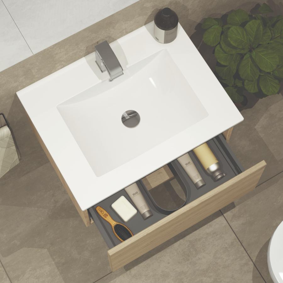 2. Features of Newland 600mm Single Drawer Suspended Basin Unit With Ceramic Basin Natural Oak:
