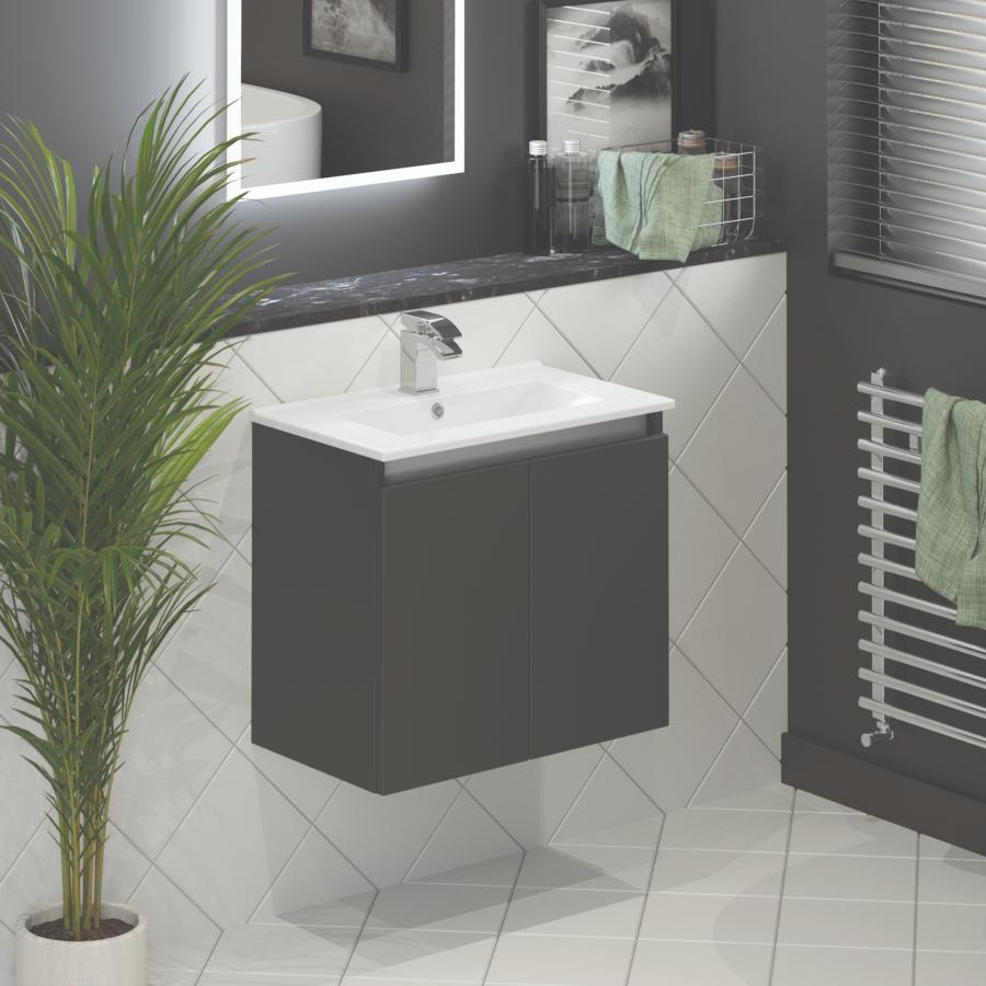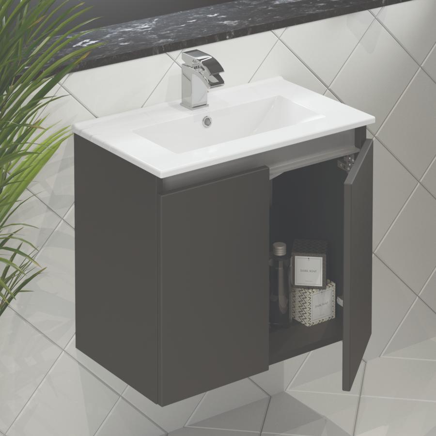 Newland 600mm Slimline Double Door Suspended Basin Unit With Ceramic Basin Midnight Mist