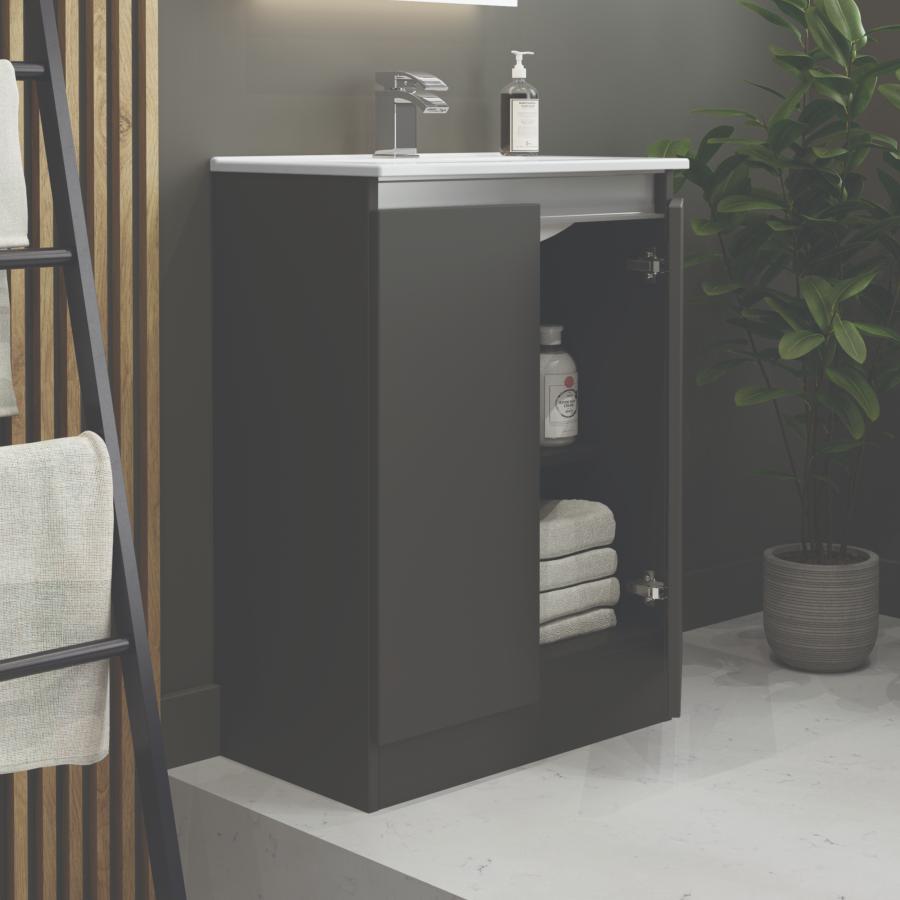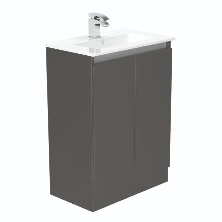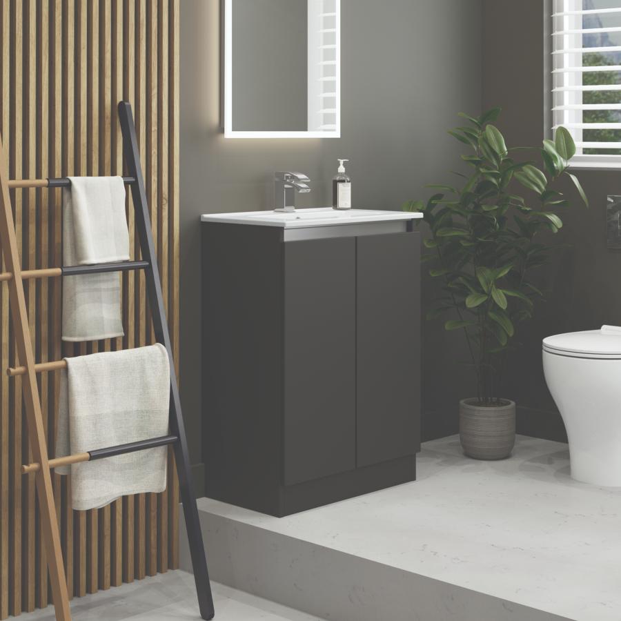 Newland 600mm Slimline Floorstanding Double Door Basin Unit With Ceramic Basin Midnight Mist