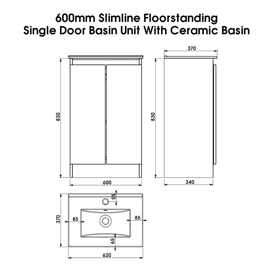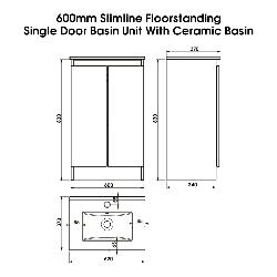 1. Description of Newland 600mm Slimline Floorstanding Double Door Basin Unit With Ceramic Basin Midnight Mist: