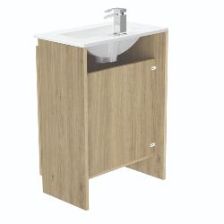 1. Description of Newland 600mm Slimline Floorstanding Double Door Basin Unit With Ceramic Basin Natural Oak: