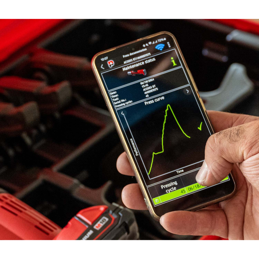 This battery-powered pressing device is equipped with numerous innovative functions that make work safer and more efficient. The swivelling head of the pressing machine enables optimum positioning, even in the tightest working areas. The ergonomically designed 2K housing ensures safe handling, while the powerful Milwaukee® lithium-ion batteries guarantee reliable performance. The ACO103 has a redundant power cut-off and a pressing force monitor with LED display, which gives you feedback on the status of the tool at all times.