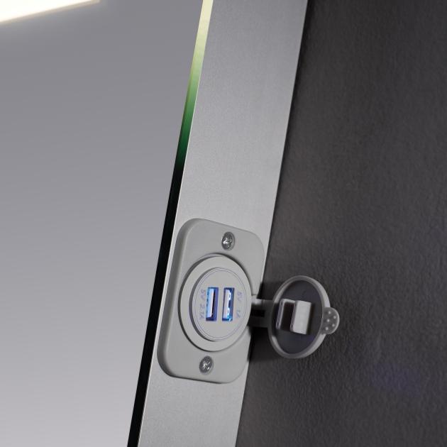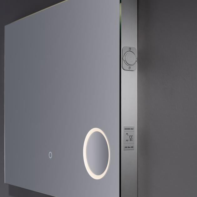 Plumb2u Cabrera 600 x 800mm Illuminated LED Mirror - Clear Glass SHM6080 - Rectangular with illumination bar at the top, Includes shaving socket, USB and an integrated makeup mirror. (Landscape).