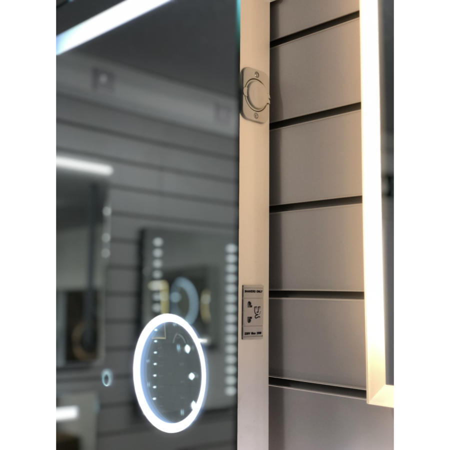 Plumb2u Cabrera 700 x 500mm Illuminated LED Mirror - Clear Glass SHM7050 - Rectangular with illumination bar at the top, Includes shaving socket, USB and an integrated makeup mirror. (Portrait).