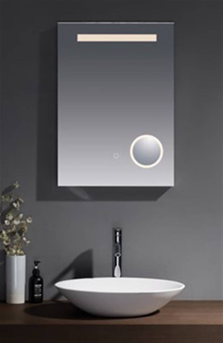 This beautiful mirror has an illumination bar that can be controlled by touch. It also includes a shaver point, two USB ports and 3x magnification illuminated makeup mirror for all your beauty needs!