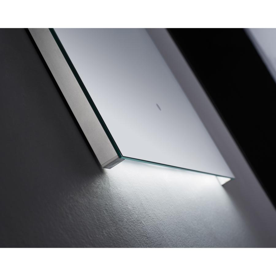 This mirror has a three-tone dimmable illumination bar integrated behind the mirror glass, which provides soft underlight. Touchless infra red sensor control is also available for your convenience!