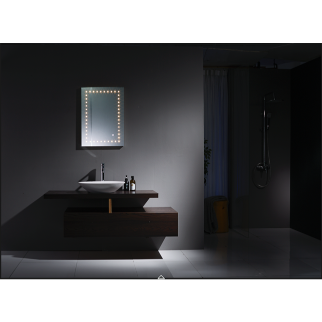 Plumb2u Nalon 700 x 500mm Illuminated LED Mirror - Clear Glass FA5070 - Rectangular framed with illuminated LED dotted lights (Portrait).