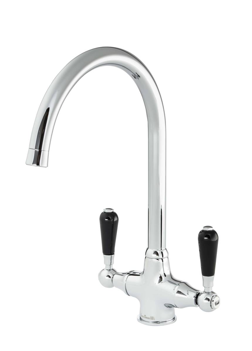 Reginox Brooklyn Dual Lever Swan Neck Kitchen Mixer Tap Chrome with Black Handles