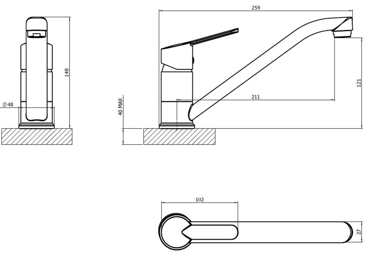 This simple and easy-to-use kitchen mixer tap is perfect for contemporary kitchens. The single lever controls the water flow and temperature, making it easy to use. The chrome finish gives a polished look that will complement any sink.
