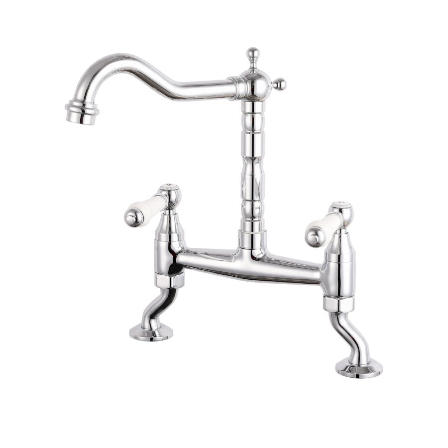 Reginox UTICA Traditional Cranked Bridge Kitchen Mixer Tap - Chrome - UTICACH