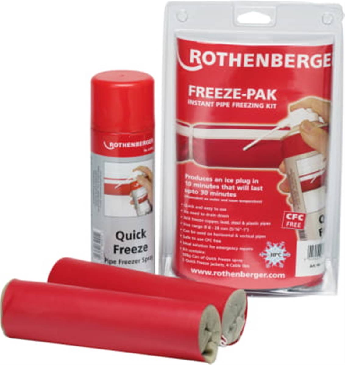 With this Freeze-Pak pipe freezing kit, you can avoid high-cost drain downs and valuable down time. The freezing kit comes with two pipe freezing jackets and a 500g quick freeze spray . This kit is ideal for emergency repairs.