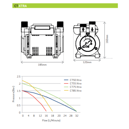 The CT85 XTRA is a single ended pump with a quiet performance, this pump is suitable for boosting either the hot OR cold water pressure to an individual hot or cold tap