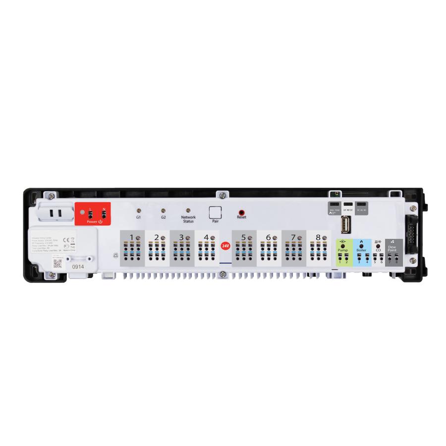 The Salus 8 Zone Underfloor Heating Wiring Centre KL08RF comes with 8 control zones for wiring and features connections for 3 actuators per zone. Includes coordinator or ZigBee wireless for Smart Home App integration, this heating wiring centre also comes with a volt-free pump and boiler switching, separate in-port for night setback signal and works with NO and NC actuators.