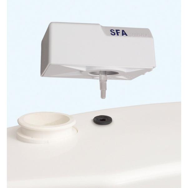 The Sanialarm has a level pressure switch that triggers an alarm fixed on the top of a Saniflo unit if the volume of water exceeds the maximum allowed level. The alarm emits a continuous warning sound, until it is switched off and the problem rectified.