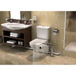 Sanibest Pro is a heavy-duty macerator suitable for heavy usage public or commercial environments. Handles connection to a WC, basin, bidet and shower.