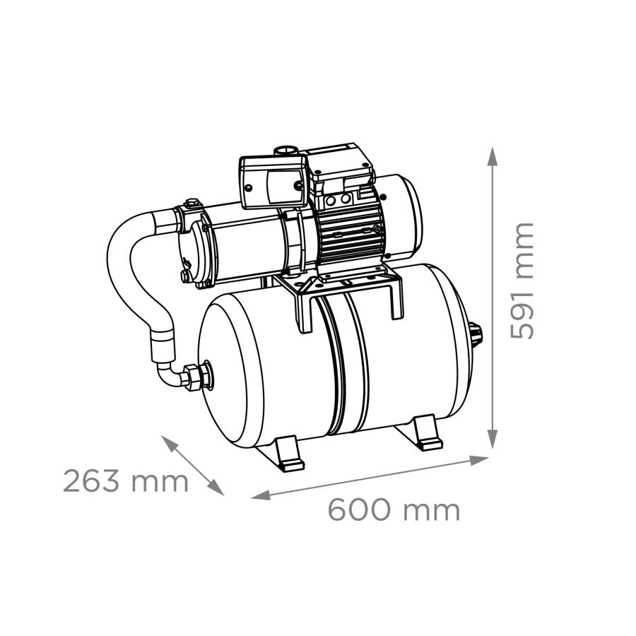 Saniboost MHP 4-40 B is a boost set consisting of the MHP 4-40 B multi-stage pump, the PC5 press control, and a 20 L diaphragm tank. It is suitable for rainwater harvesting systems, irrigation, pressure boosting, and the pumping of clear water without abrasive or aggressive components. With a max. flow rate of 4 m³/h and a max. head of 40 m, this boost set is one of our most efficient, robust, and quiet models.
