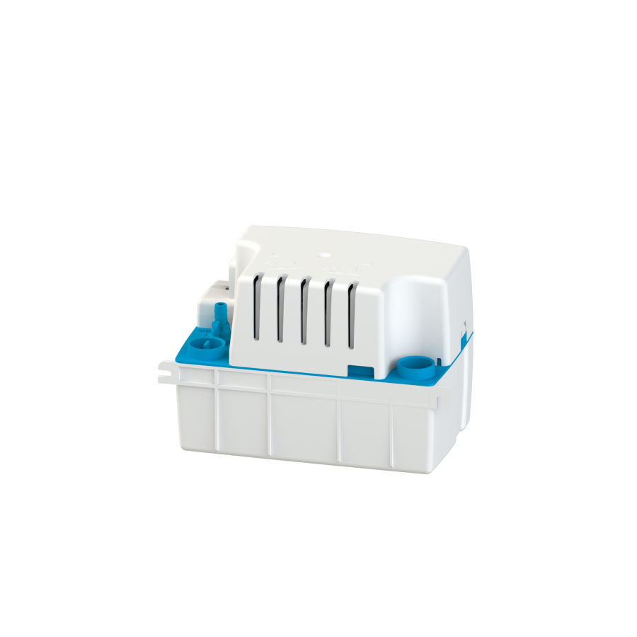 The Sanicondens Pro has 2 inlets and is supplied with a check valve. It can be wall mounted or floor standing.
