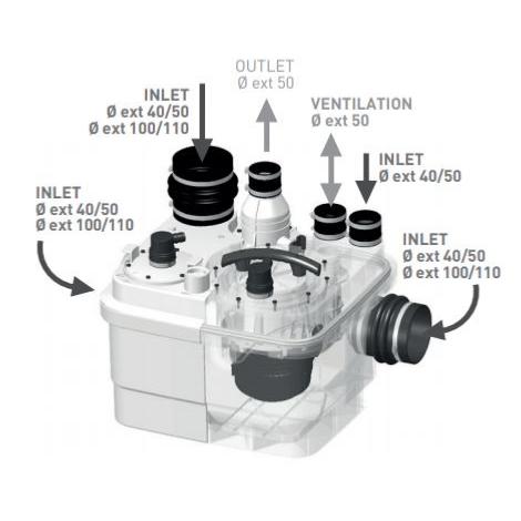 The Sanicubic 1 is a robust macerator with 1 macerator pump that has been designed for the discharge of waste from up to two WCs plus multiple grey water producing appliances in busy business environments or larger domestic situations.