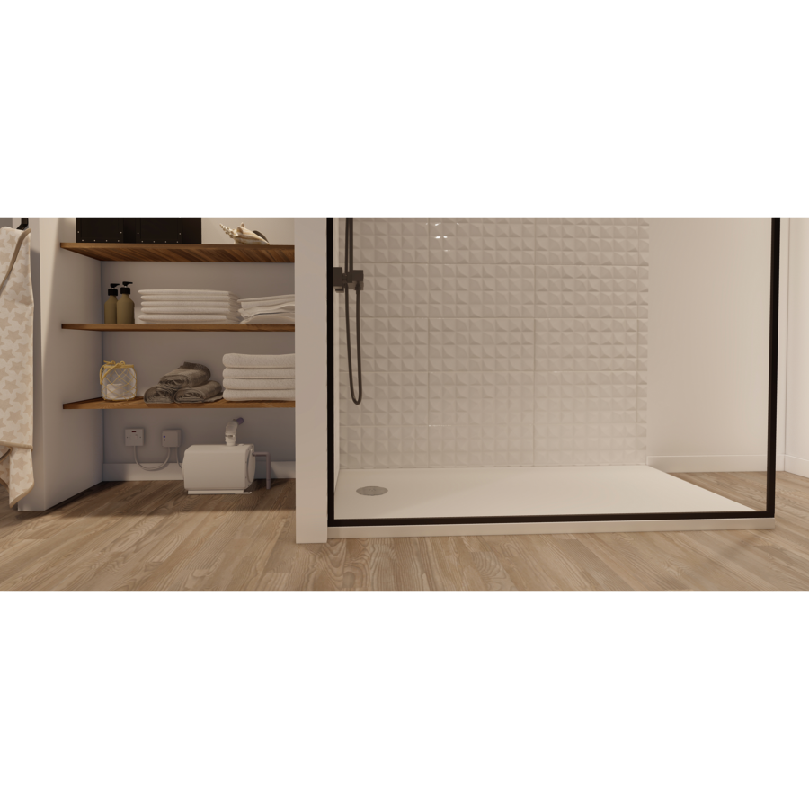 Designed specifically where floor drainage is required but where space underneath is very limited e.g. wet rooms. This two part kit with a powerful shower waste pump and choice of four waste designs can pump up to 3m vertically as well as 30m horizontally. Higher flow rate means it can be used with powerful 'rain head' showers.