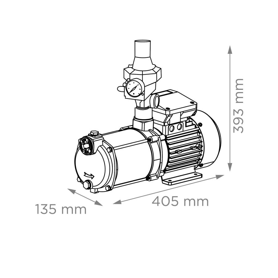 SaniMHP 4-40 PC2, equipped with a press control PC2, combines efficiency and versatility for use in clear water. Its multi-stage design ensures quiet operation and suction up to 8 m. Thanks to its press control, this pump is ideal for watering and domestic applications, with automatic activation
