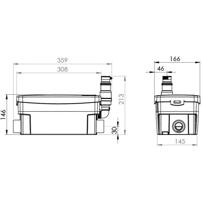 The Sanishower + can be installed next to or underneath a shower tray with access for maintenance. Capable of pumping a standard electric or gravity mixer shower. Two inlets mean a wash basin can be added too.