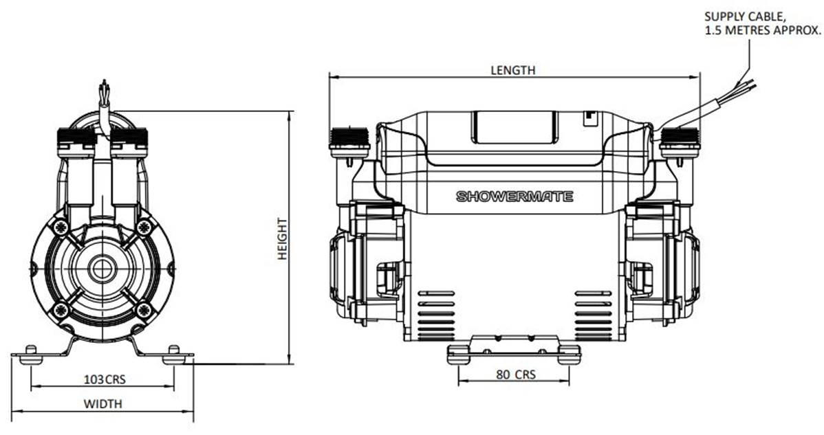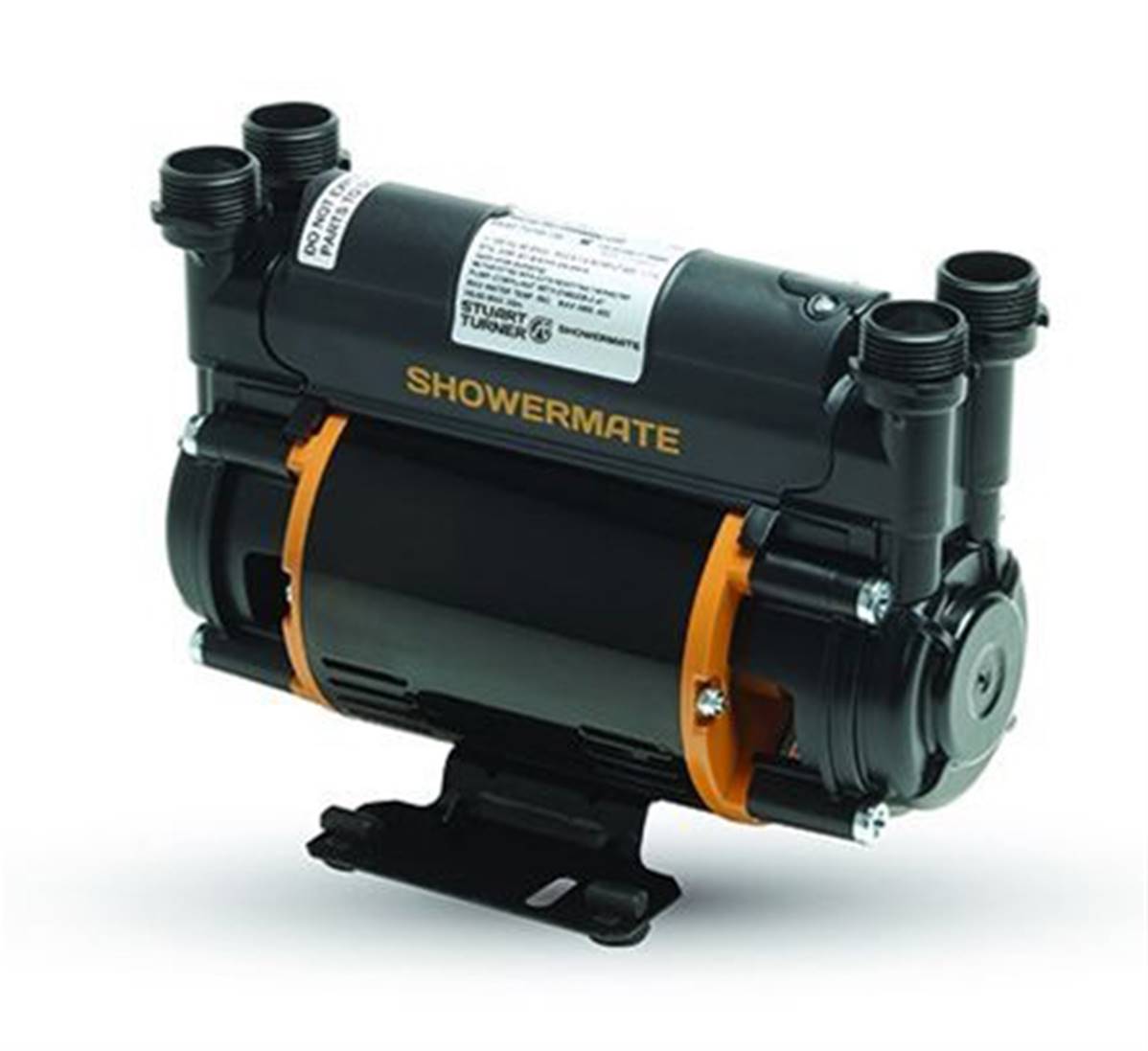Showermate Standard 2.6 bar Twin Shower Pump. Designed to boost the incoming hot & cold water supply to a shower, bath, shower mixer or mixer tap. Suitable for positive head applications only.High quality, high performance compact pump supplied with four 15 mm anti-vibration flexible hoses with integral isolation valves on the inlets.All Showermate Standard pumps are suitable for use in open vented (gravity fed) systems for positive head applications.