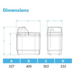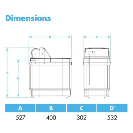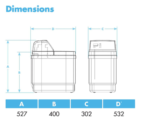 Dimensions for the 9L water softener: