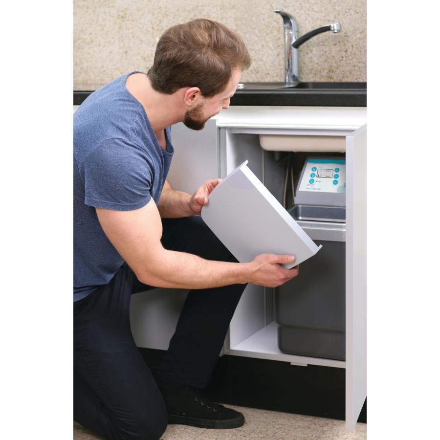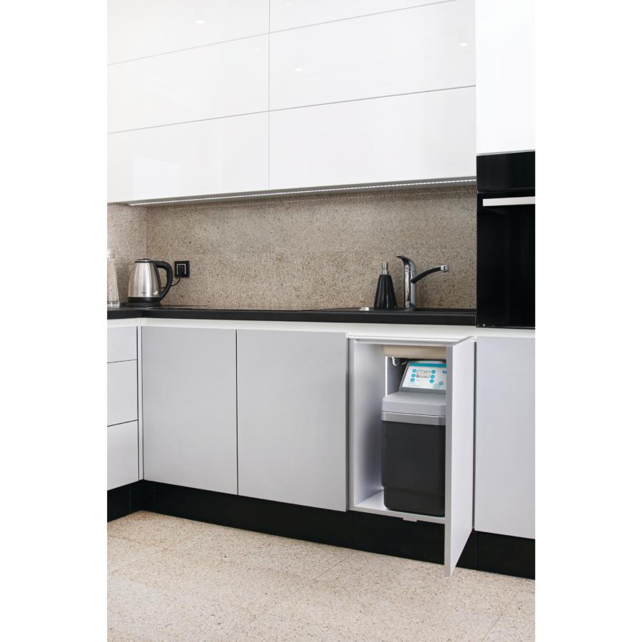 This water softener is ideal for small spaces and is suitable for 1-5 people (*based on usage of 140l per person at 300ppm). The product NSC9PRO is the smallest of the Tapworks domestic water softeners. Suitable for under-sink installations. The LCD display is backlit making data reading simple even in basements or poorly lit places. A domestic water softener protects pipes, boilers, and appliances that use water such as washing machines, dishwashers and coffee machines. This water softener extracts the hard minerals from the water in your home, which means you experience truly softened water.