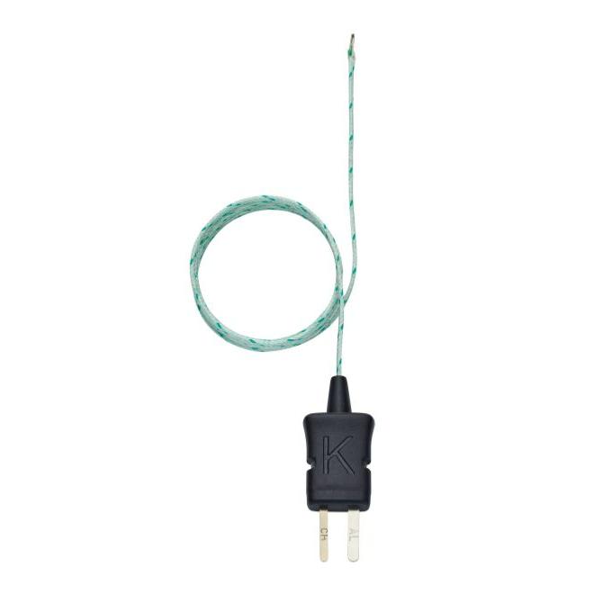 ✔ Flexible, fast-response temperature sensor (TC type K, class 1) with fibreglass-coated cable (800 mm long), measuring range -50 to +400 °C