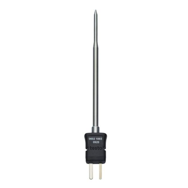 ✔ Robust, fast-response immersion/penetration probe (TC type K, class 1) with secure attachment via innovative locking mechanism in the handle, ideal for temperature measurements in liquids, pastes and semi-solid media, measuring range -50 to +400 °C