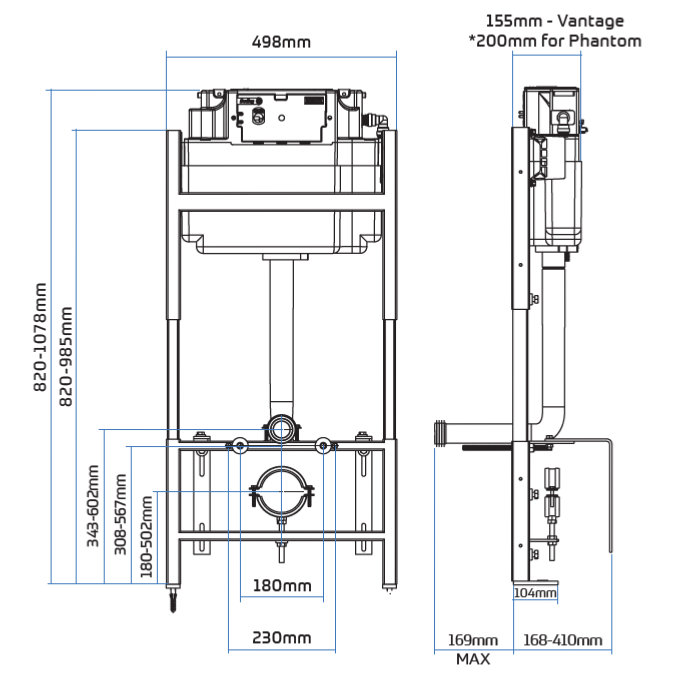 ✔ Unique design enables frame height to be set between 820mm and 1078mm for unrivalled installation flexibility