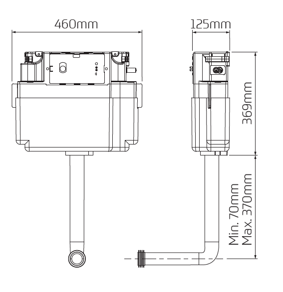• Button, plate or sensor can be installed up to 250mm from cistern