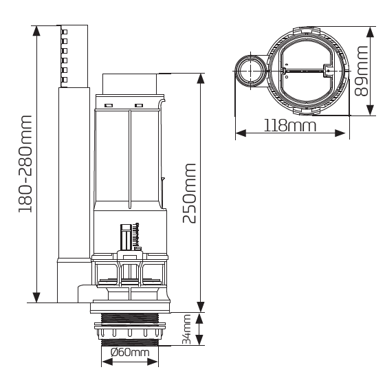 ✔ Bayonet fitting enables valve body to be quickly & easily removed from the cistern